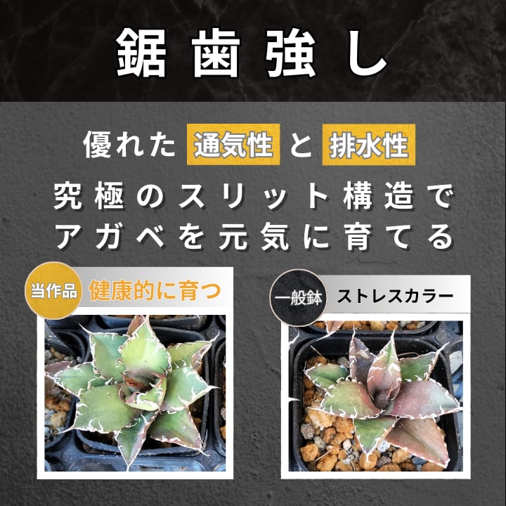 底面を5~10mmほど浮かせ、さらにスリット加工を入れることで、根が元気になる酸素を取り入れながらも排水性が非常に高いです。